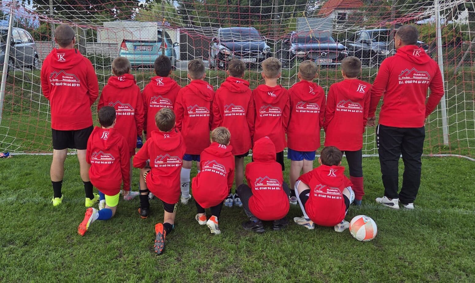 Große Freude bei unserer E3: Dank der Unterstützung des Dachdeckerbetriebs Christian Fischer konnte die Mannschaft mit neuen, einheitlichen Pullovern ausgestattet werden.