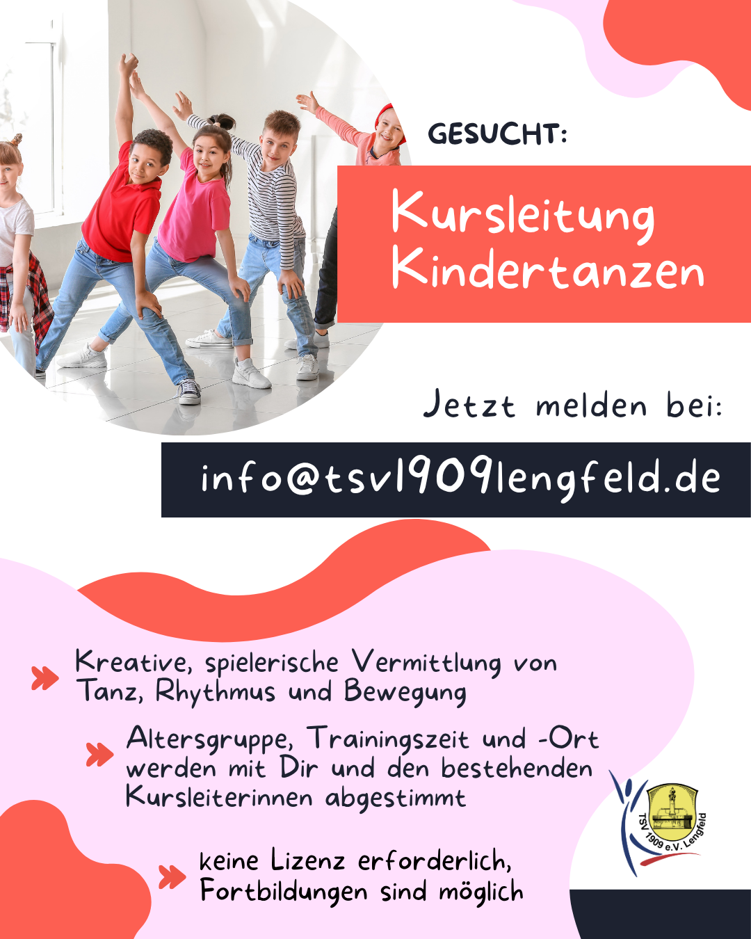 Der TSV 1909 e.V. Lengfeld erweitert sein sportliches Angebot im Bereich Tanzen und sucht ab sofort eine engagierte Kursleitung für das beliebte Kindertanzen.